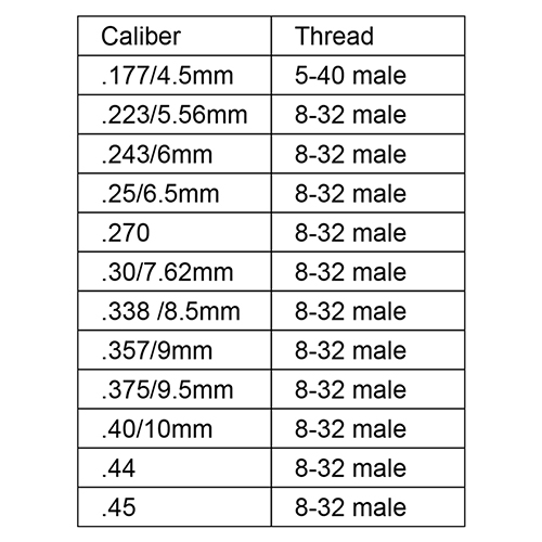 .177, .22, 6 mm, .25, .27, .30, .338, .35, .357, .40, .44, .45, .50 кал.