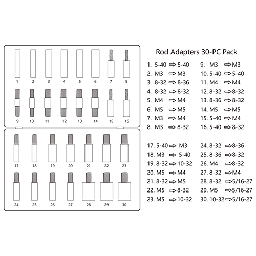 Адаптери за монтаж на пръчки за почистване на пистолети Опаковка от 30 бр. 5-40 8-32 10-32 5/16-27 M3 M4 M5 Резби в мъжки и женски съединители на пръти