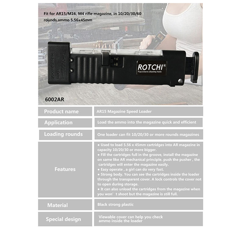● Използва се за зареждане на патрони 5,56 x 45 mm в AR магазин с капацитет 10/20/30 или повече.