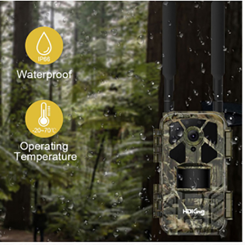 4G безжична връзка / Дизайн с двойна антена / Водоустойчив IP65 / 5.0M пиксела CMOS сензор / 0.5S бързо време на задействане / Дълго време в режим на готовност / Дълъг обхват на нощно виждане / Работна температура