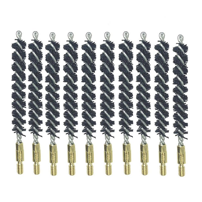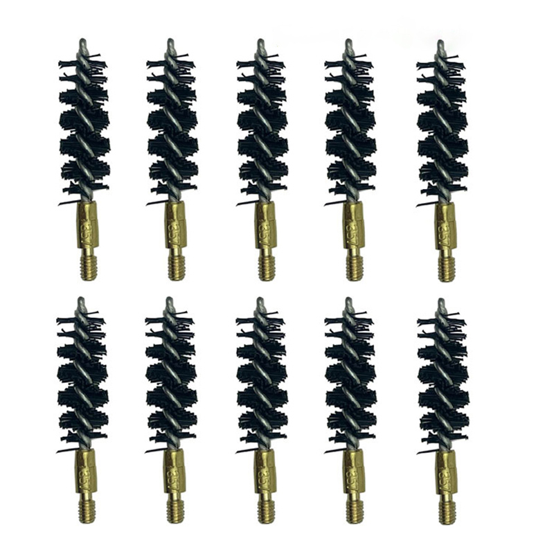 Четки за почистване на пистолети с найлонови проводници за почистване на отвора ● Тежки найлонови проводници. Стоманено стебло против ръжда. ● Диаметърът на всяка четка ще бъде с 0,5-3 mm по-голям от вътрешния диаметър на съответния отвор, така че да може да почисти отвора напълно. ● Всяка четка с номер на калибър, отпечатан върху четката, не е ясно. ● Гайката се притиска плътно и здраво към стеблото на четката. ● OEM и логото на клиента се приемат.