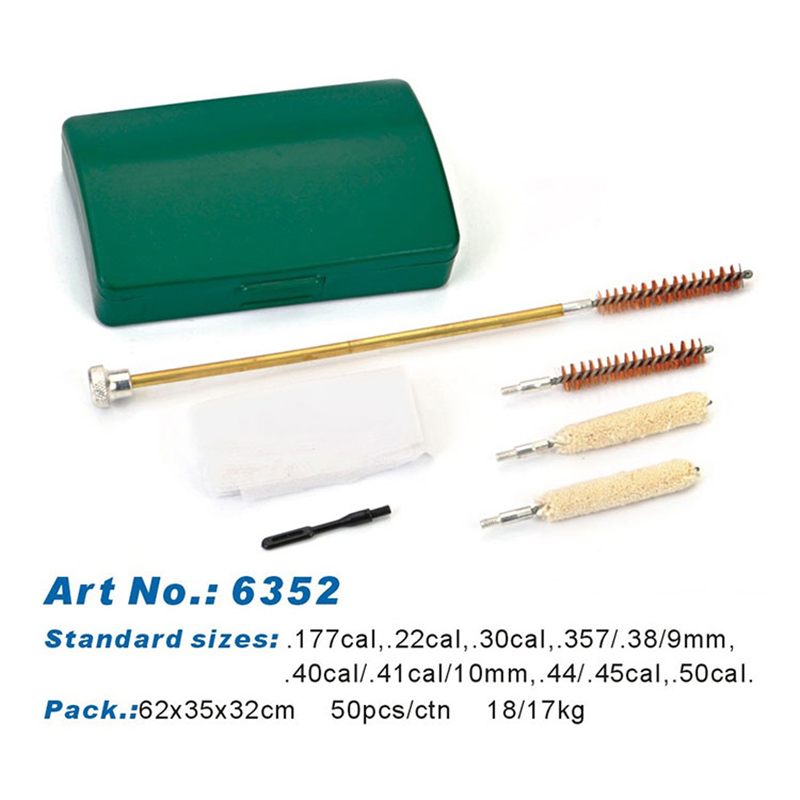 Малък пластмасов комплект за почистване на пистолети ● Извитият пластмасов калъф не се плъзга върху масата. ● Устойчиви четки и държач за лепенка с прорези, подходящи за почистване на отвора. ● 2 месингови четки и 2 памучни мопа. Ако единият е свършил, можете да използвате следващия. ● Висящи и ефективни ● Лесно поставяне на OEM или клиентски стик и лого