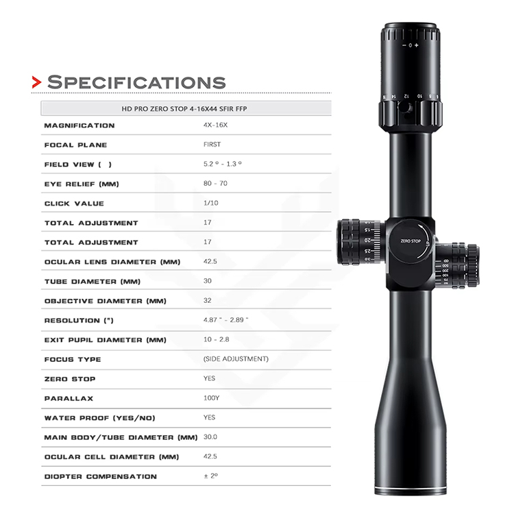 ZERO STOP 4-16X44 SFIR FFP-A 30MM диаметър HD светлопропускащ Zero Stop ловен прицел Ffp